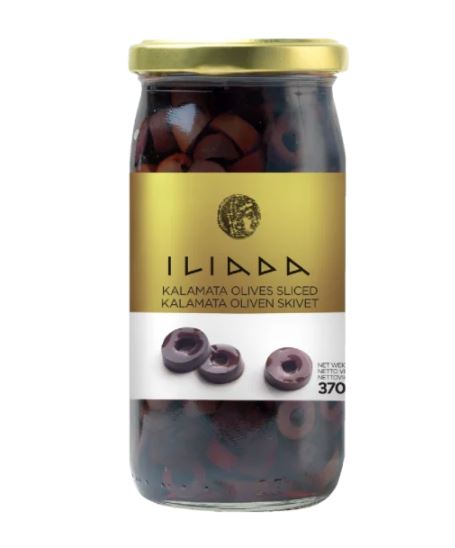 Kalamata oliven skivet, vann, rødvinseddik, salt.