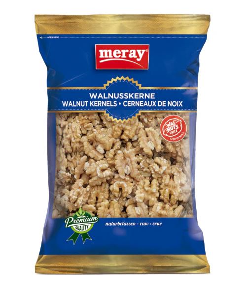 Og den er selvfølgelig veldig populær i snacks. Meray-valnøtter